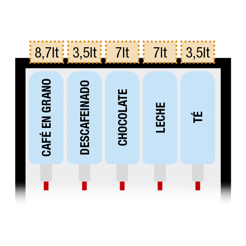 Diseño e interfaz de usuario Color plata con elegantes formas redondeadas 16 pulsadores directos con etiquetas grandes Cajón recogida de vasos ergonómico Diseño en línea con la gama Snakky.