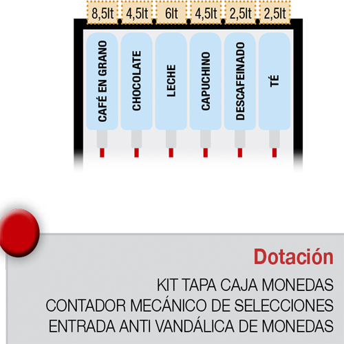 Diseño e Interface de Usuario Elegante estética negra / plateada coloreada por dos llamativos paneles con iluminación LED Panel de selección capacitivo rodeado de un marco cromado Nuevo diseño del área de recogida del producto Posibilidad de instalar hasta tres sistemas de pago Diseñado para ir en consonancia con la gama Melodia.