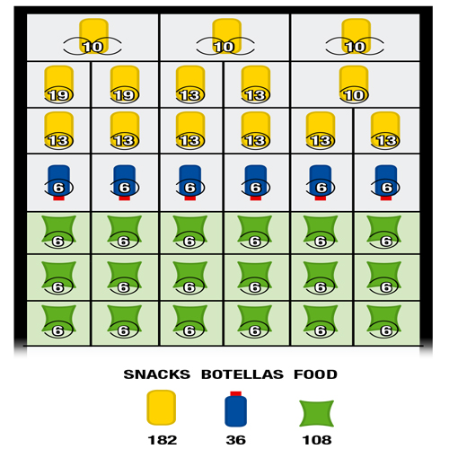 Configuración flexible y avanzada tecnología de erogación Gran capacidad y configuración flexible en un espacio reducido Excelente ratio calidad / precio Espirales personalizables para la oferta de snacks, latas, botellas y tetra pack. Diseño e Interfaz de usuario Diseño elegante en color plata y negro con iluminación LED de la vitrina Teclado numérico capacitivo para la selección de producto.Introducción de monedas anti vandálico Cajón de recogida ergonómico Electrónica y Mantenimiento Implementación avanzada del protocolo MDB Configuración automática y obtención de datos estadísticos a través del software Giga Electrónica 16 bit con 4 mb de memoria flash eprom Display alfanumérico azul con 20 caracteres en 4 líneas