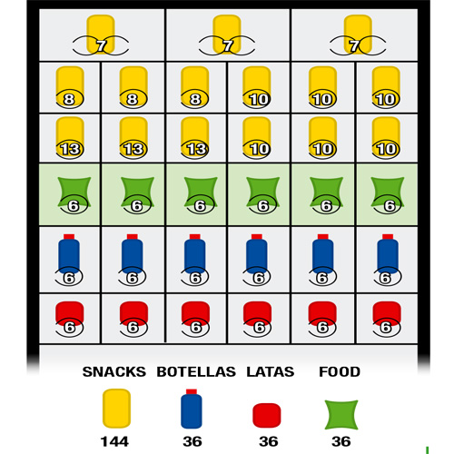 Oferta completa de productos desde productos no alimenticios a alimentos frescos. Espacio optimizado dentro de la celda para una capacidad de producto optimizada. Unidad de enfriamiento de alta eficiencia para bajo consumo de energía. Elegante estética negra / plateada con líneas modernas y ordenadas Teclado numérico capacitivo iluminado por LED Iluminación LED de la parte interna de la celda Bandeja de entrega de nuevo diseño con superficie plana fácil de personalizar Diseñada para coordinar con la gama Concerto Electrónica de 16 bits con flash de 4 mb eprom Pantalla gráfica grande 188 x 64 píxeles Posibilidad de configurar hasta tres temperaturas dentro de la celda Fácil manejo de la máquina configurada a través de la conexión del Esclavo Maestro GIGA con rango H&C Concerto
